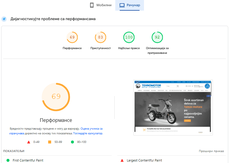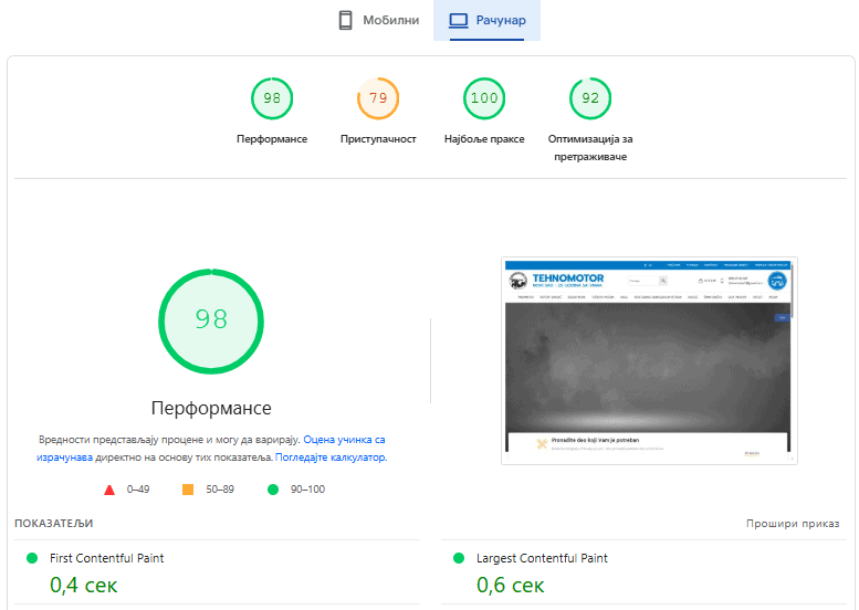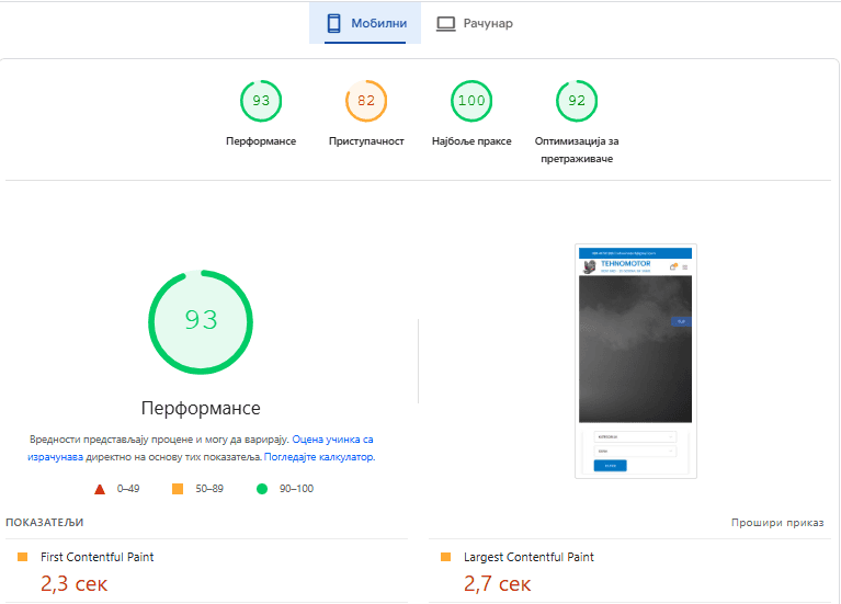 Brzinu sajta merili smo na https://pagespeed.web.dev/